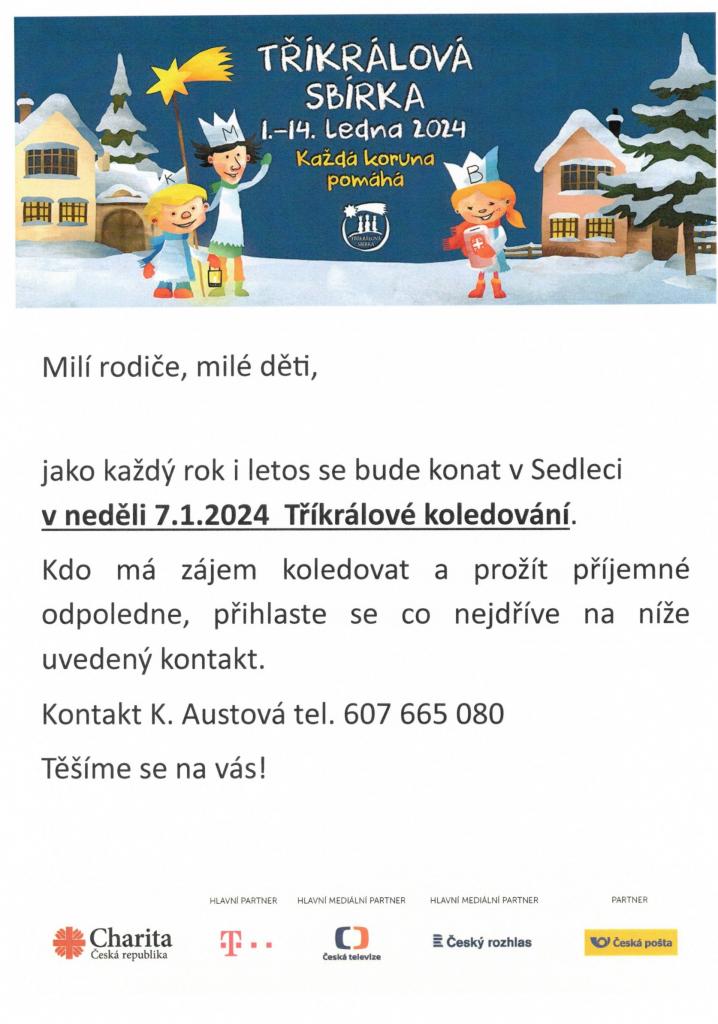 Kdo má zájem koledovat, přihlaste se co nejdříve u paní Kateřiny Austové na tel. čísle: 607 665 080